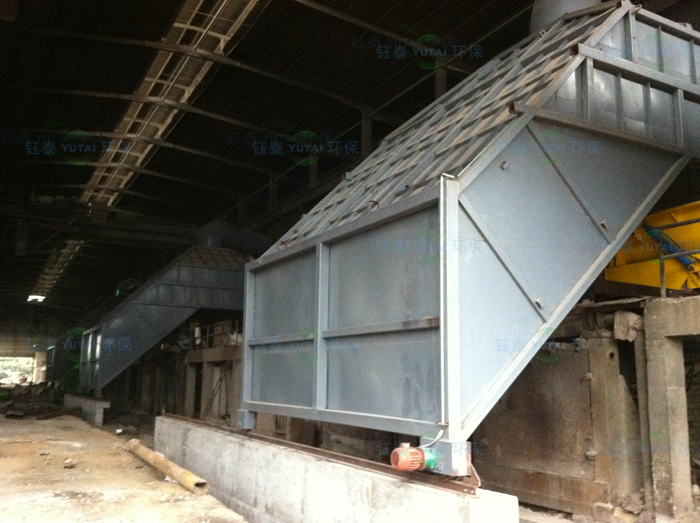 中頻感應爐煙氣捕集系統(tǒng)由可移動覆蓋式斗密閉集塵罩、加料設備、出料設備和除塵設備組成。移動集塵罩完全覆蓋操作平臺和出鐵口,使得中頻爐的冶煉生產過程完全在集塵罩中進行,實現(xiàn)了煙氣捕集的全過程。