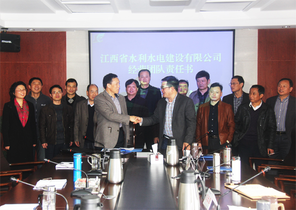 2015年4月11日,江西省水利水電建設(shè)有限公司2015年度國內(nèi)經(jīng)營團(tuán)隊業(yè)績責(zé)任書簽字儀式在公司總部星河國際22樓會議室舉行。公司總經(jīng)理徐洪良分別與公司經(jīng)營層高管、部門負(fù)責(zé)人簽訂了2015年度國內(nèi)經(jīng)營團(tuán)隊業(yè)績責(zé)任書。