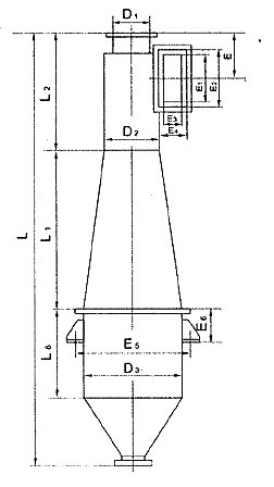 CLK擴散式旋風除塵器,適用于捕集干燥的非纖維性的顆粒狀粉塵,主要特點是筒身呈圓錐形,因而減少了含塵氣體自筒身中心短路到出口去的可能性,并裝有圓錐形的反射屏,防止兩次氣流將已經分離下來的粉塵重新卷起,被上升氣流帶出,因而提高了除塵效率.