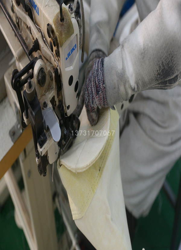 除塵濾袋縫制,要據除塵布袋袋口直徑、長度不同,合理裁剪針刺氈濾料,袋口袋底領做加強保護層處理,濾袋專用三針六線縫紉機或濾袋自動縫紉機集合高強度耐腐蝕三股縫紉線精密成袋。