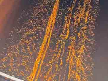 沒安裝電捕焦油器的光氧凈化設備里面都布滿的塑料煙氣的焦油,連煙囪里也滿是焦油。